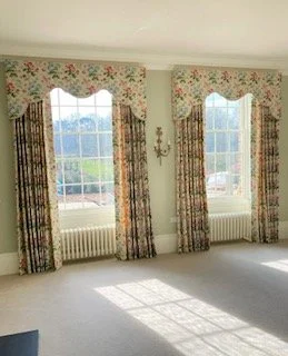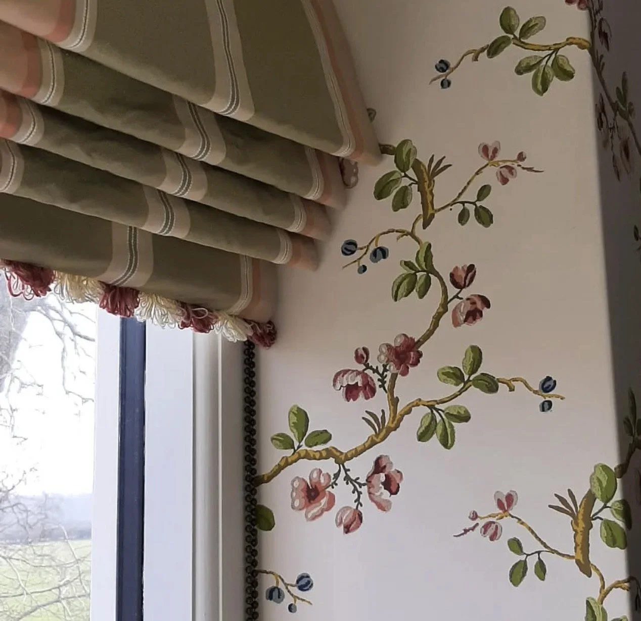 We specialise in handmade curtains and blinds of every sort. Curtains and blinds for unusual shaped windows can be exactly tailored, incorporating swags and tails, drapery and pelmets with elaborate trimmings if required. Linings and interlinings are used as standard, and headings are done by hand.
